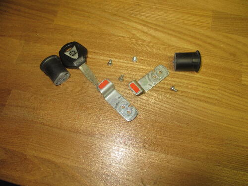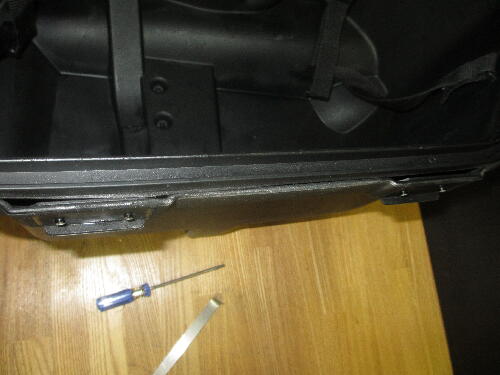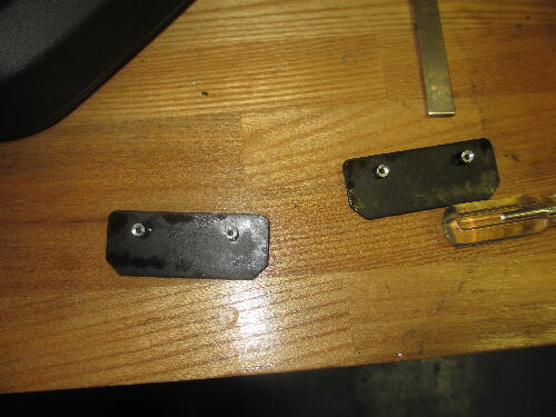 D仮止め時のリベットを抜いて丁番をリベットの穴、金属プレートの穴に合わせて入れる