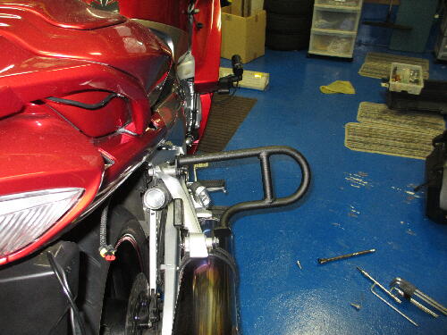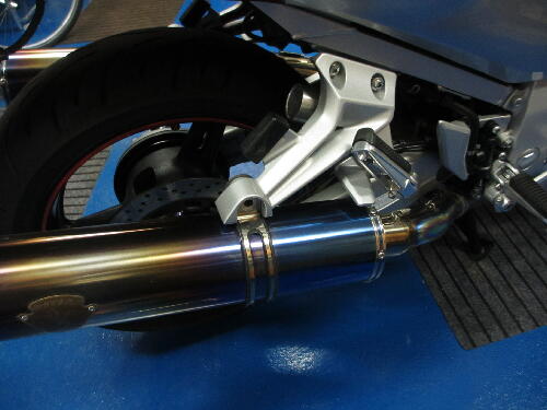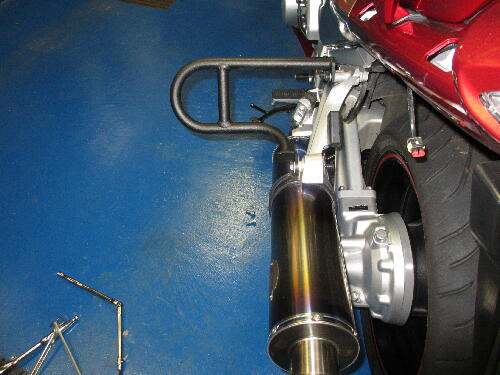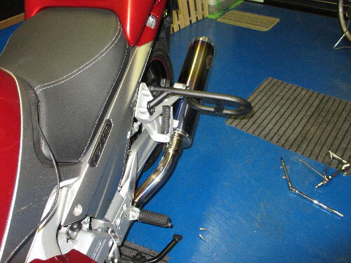 白バイタイプはマフラーステーはそのままで、リアステッ